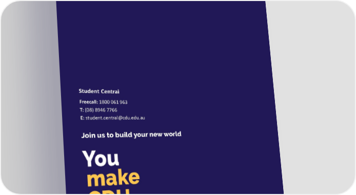 Student Central Freecall: 1800 061 963 T: (08) 8946 7766 E: [email protected] Join us to build your new world cdu.edu.au